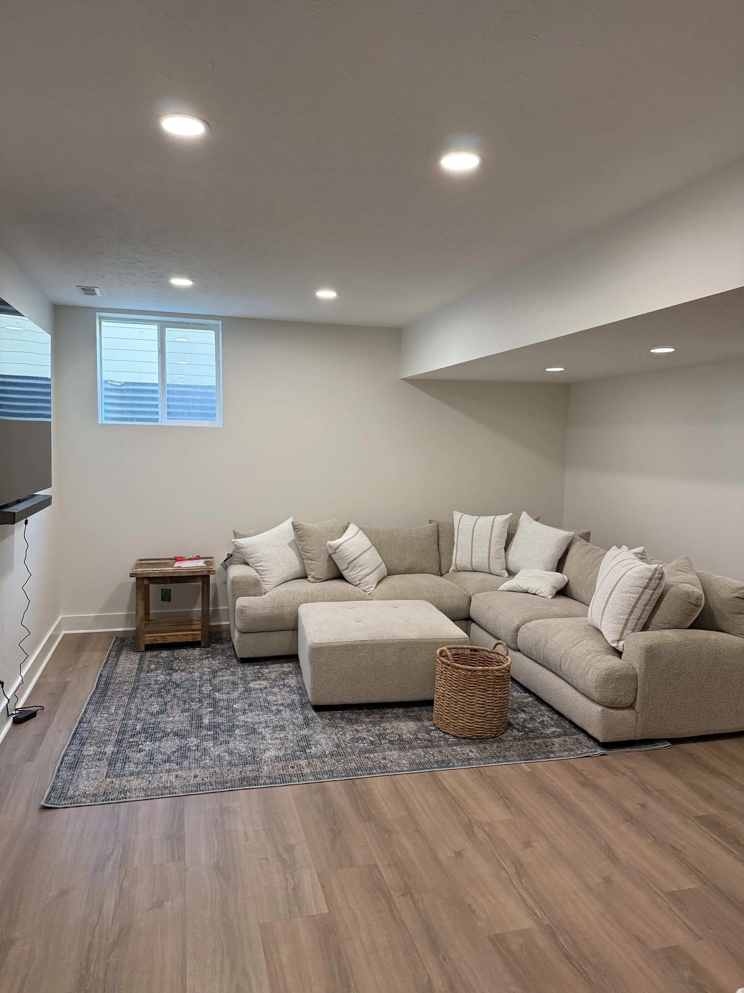 A well-lit basement feels intentional, bright, and connected to the rest of the home.